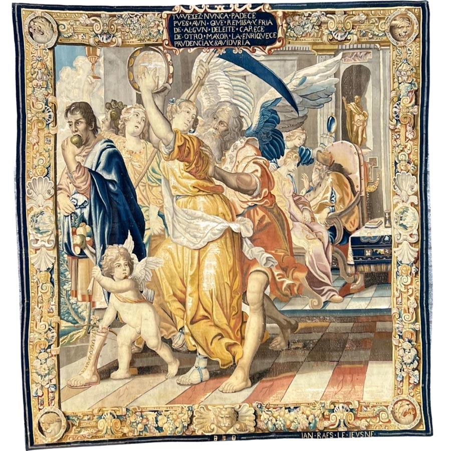 17th Century Brussels Tapestry, Allegory of Time, Wisdom and Human Experience