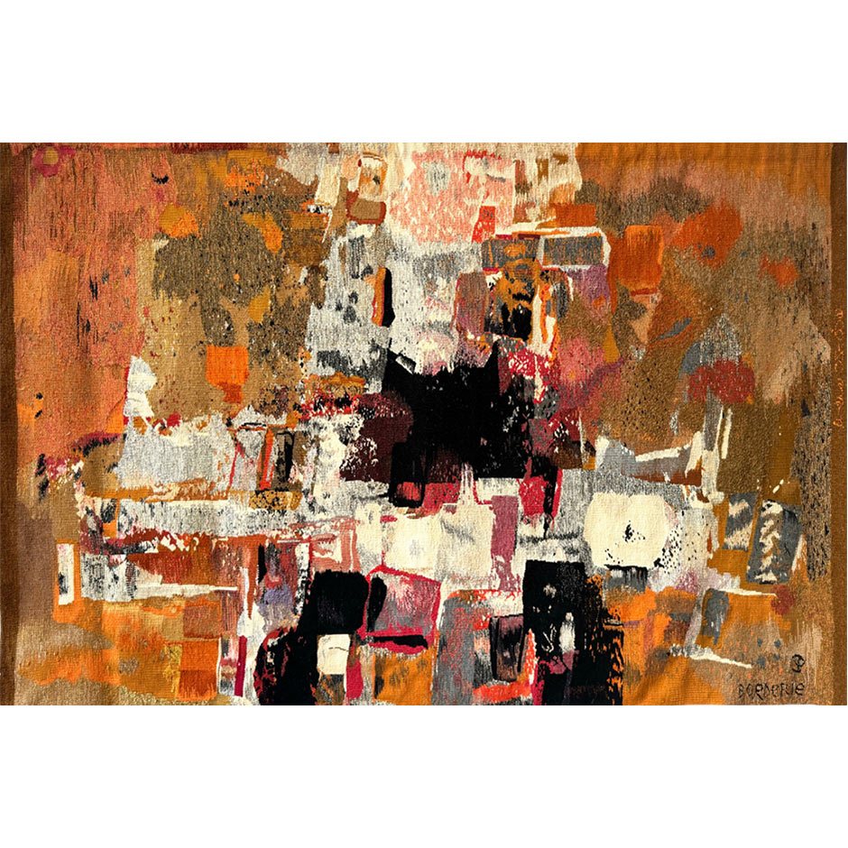 The Les armes de la lumière tapestry reflects André Borderie’s exploration of abstraction as a means of conveying energy, structure, and illumination. Conceived as a dialogue between form and light, the composition embodies the renewed importance of tapestry as a serious artistic medium in the mid-20th century, a movement in which Borderie played a central role.