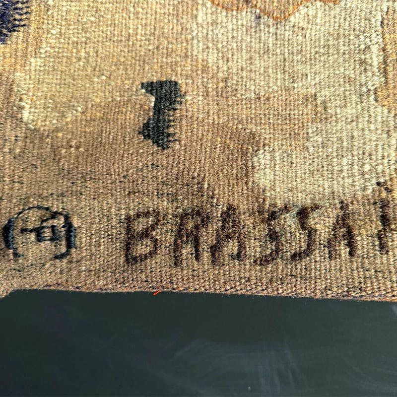 Les empreintes stands as a rare example of Brassaï’s work in tapestry. It preserves the immediacy of his photographic vision while expanding it into a medium where texture and touch become central to the image.