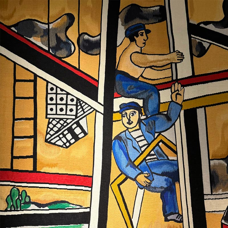 Produced in a limited edition of six and preserved in excellent condition, Les constructeurs stands as a significant example of Léger’s work in textile. It embodies his vision of modern life—where human labor, industrial progress, and artistic form converge—while demonstrating the enduring relevance of tapestry as a medium for modern art.