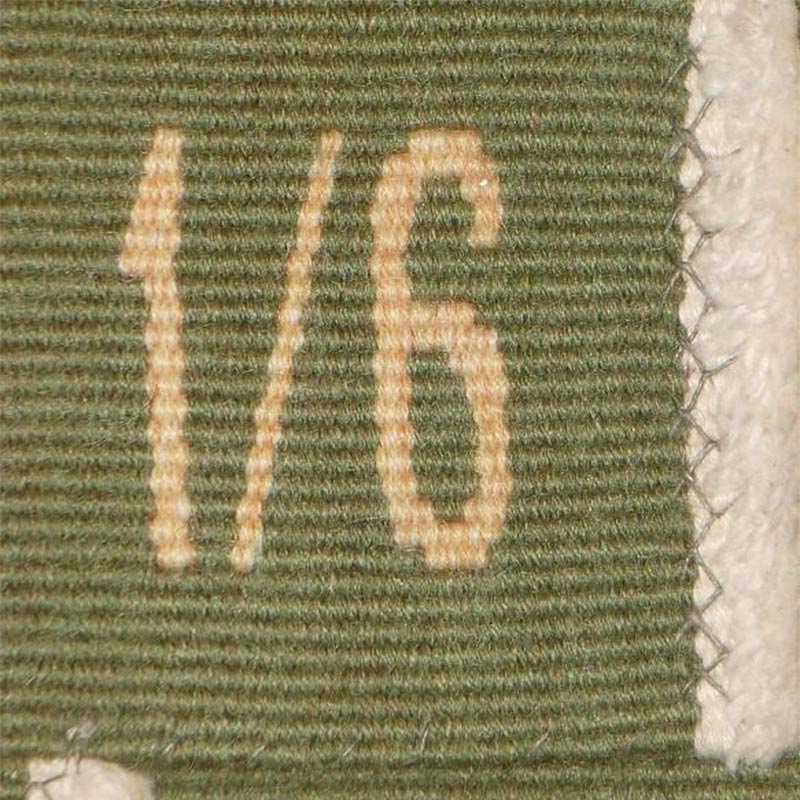 The translation into tapestry enhances the work’s presence. The wool medium softens the precision of the line, introducing warmth and subtle variation across the surface. The colors take on a muted luminosity, and the woven texture adds depth to the otherwise simplified forms, reinforcing the balance between delicacy and structure.