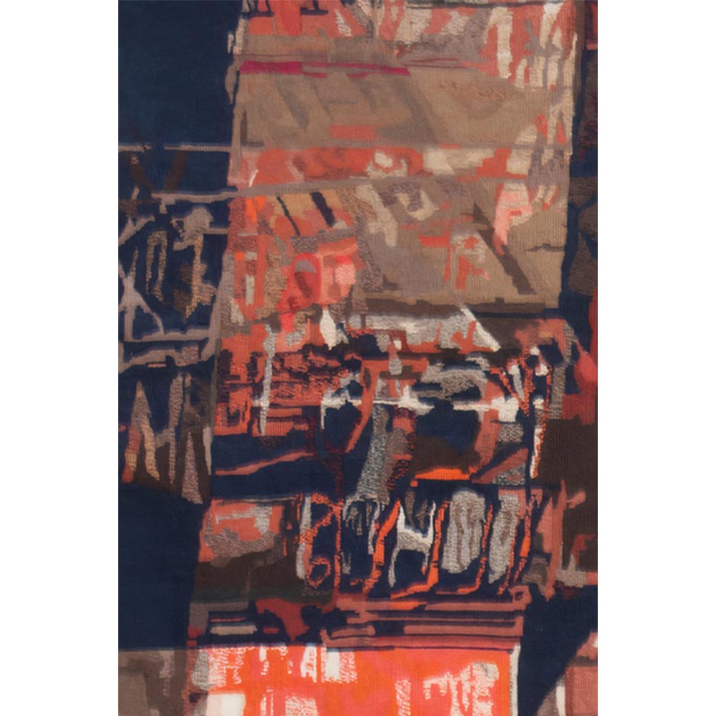 The Portalegre workshop, known for its precision and sensitivity to modern design, plays a crucial role in the realization of the work. The woven surface introduces subtle variations in texture and tone, enhancing the depth of the composition while maintaining clarity of form. The wool medium softens the geometry just enough to create a tactile, atmospheric presence.