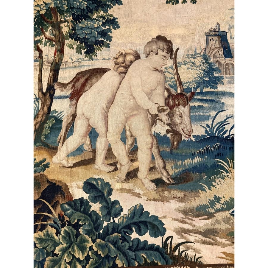 Late 17th–Early 18th Century English Tapestry, Bacchanale d’Enfants avec une chèvre